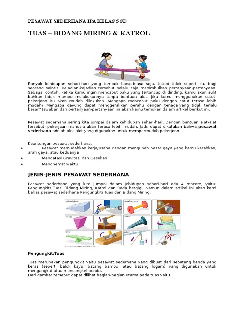 Muhammad endi 9:35 pm ipa fisika , kelas viii , smp/mts. Pengungkit dapat memudahkan usaha dengan cara menggandakan gaya kuasa dan mengubah arah gaya. Energi dan kerja (usaha) dinyatakan dalam satuan joule (newton meter). Katrol katrol digunakan untuk mengambil air atau mengangkat beban yang berat. Pesawat sederhana tuas katrol bidang miring roda gigi (gir) menu sk/kd tuas katrol bidang miring roda gigi x 5.
